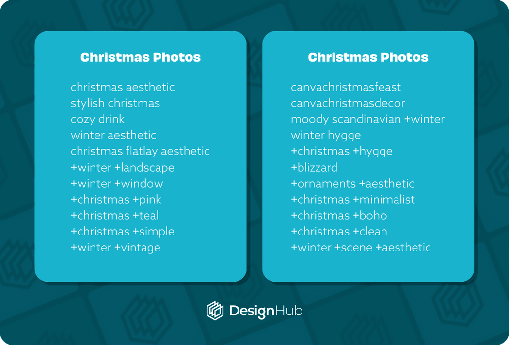 Struggling to find the right keywords and search terms to find elements and photos for your Canva Christmas designs? You’ve arrived at the right place.