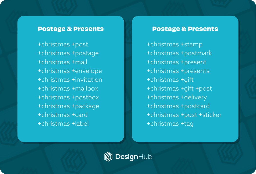 Canva Christmas Postage Element Keyword Examples: