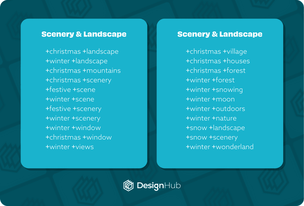 Below are some keywords to help you find Canva Christmas scenery and landscapes elements: