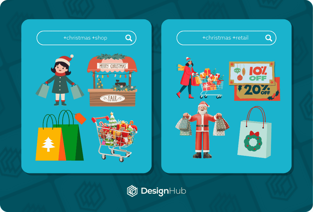 Below are some keywords to help you find Canva Christmas shopping elements: