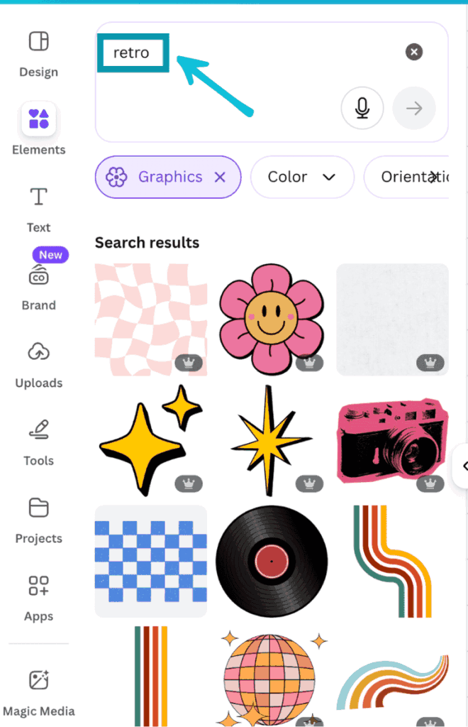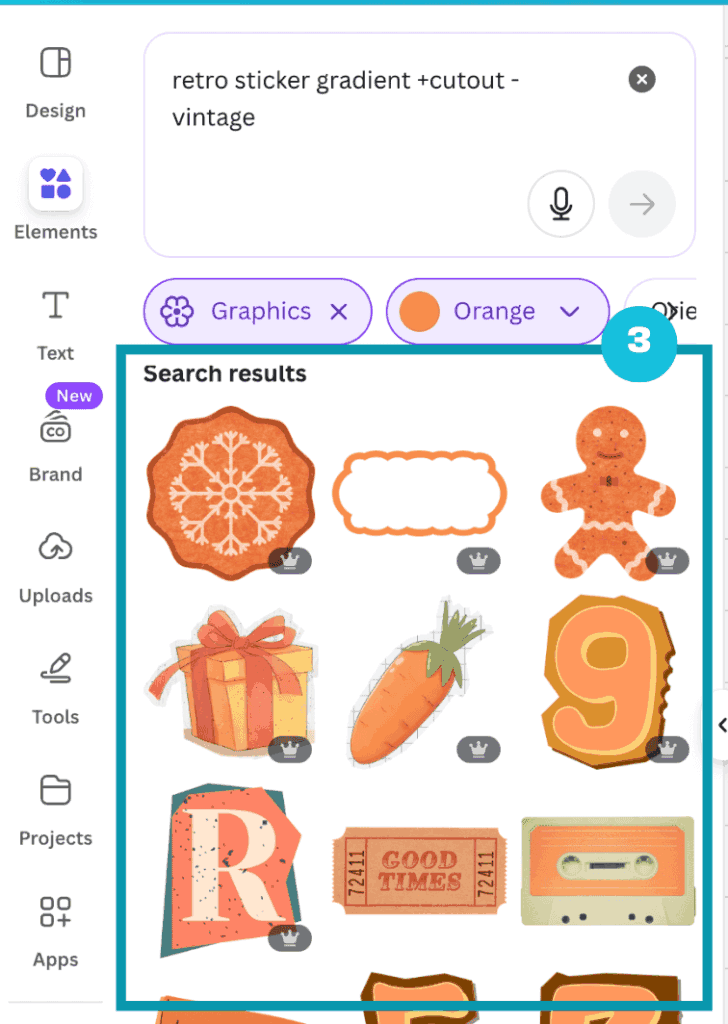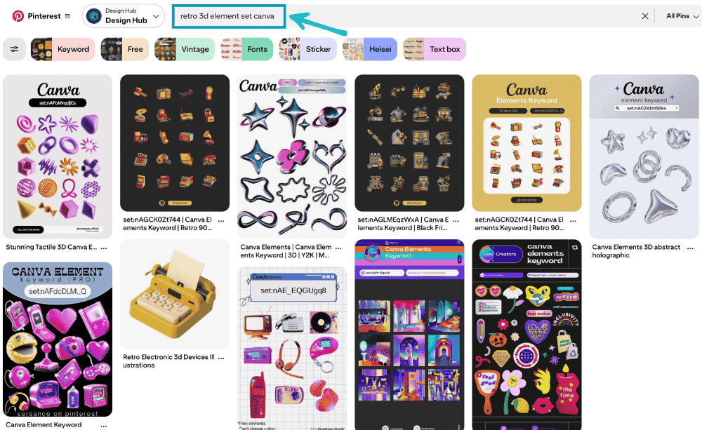 You can be specific in your search e.g. “retro 3d element set canva” and there’s a good chance that you can find a set that someone has already curated on Pinterest.