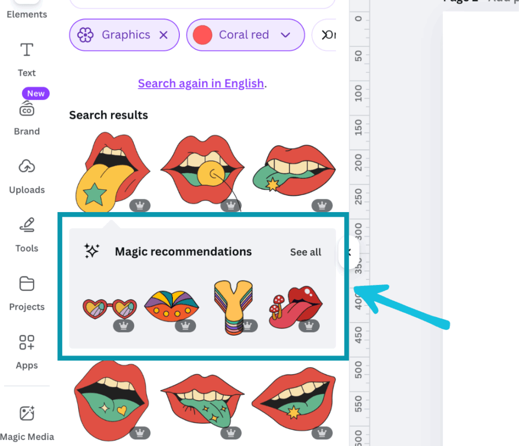 When you add an element to your design canvas – Canva will sometimes suggest some ‘magic recommendations.