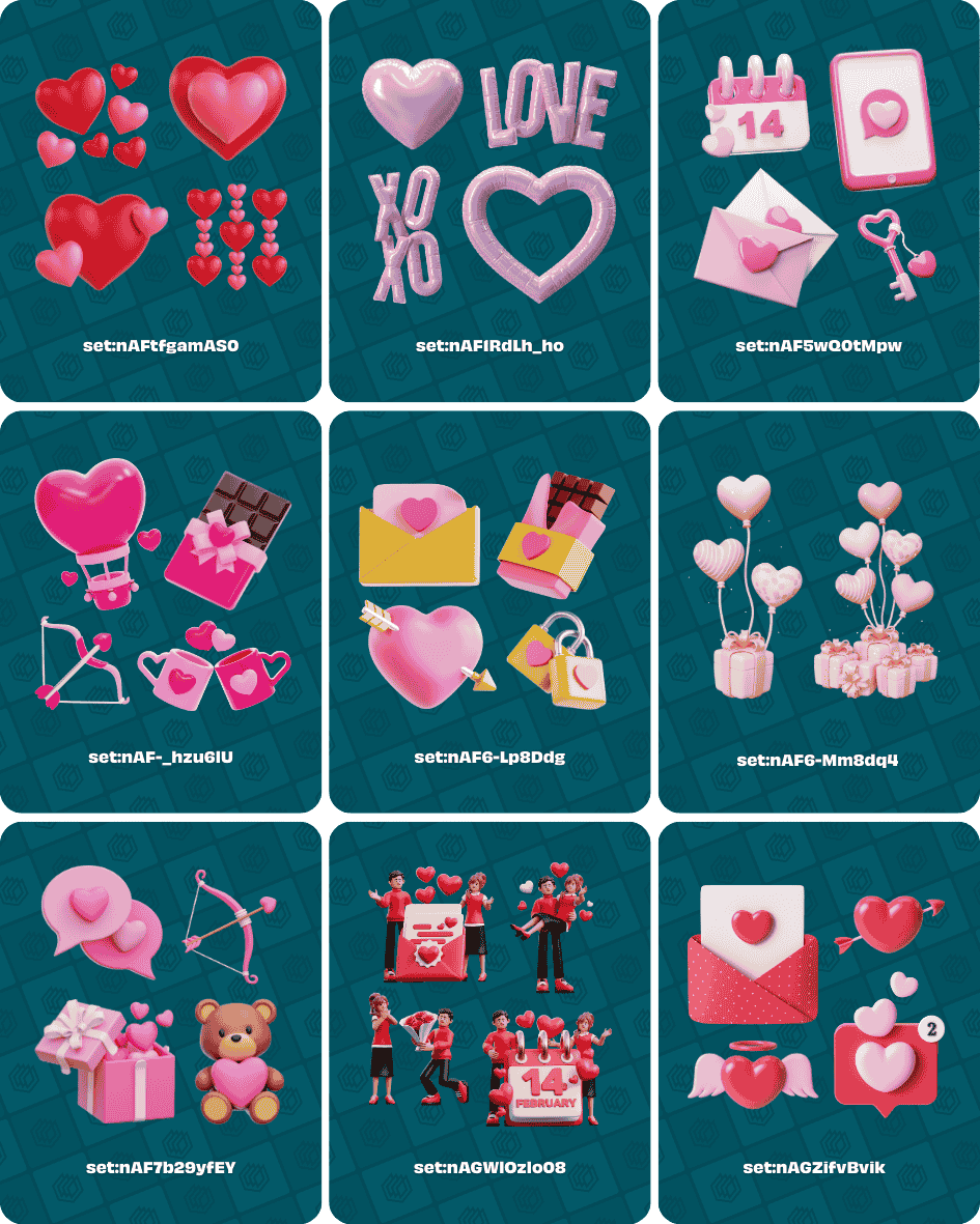 - set:nAGZifvBvik (3D stylish Valentine’s Day elements)