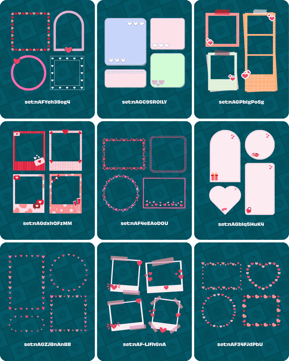 - set:nAGblq5HuK4 (Valentine’s Day frames)