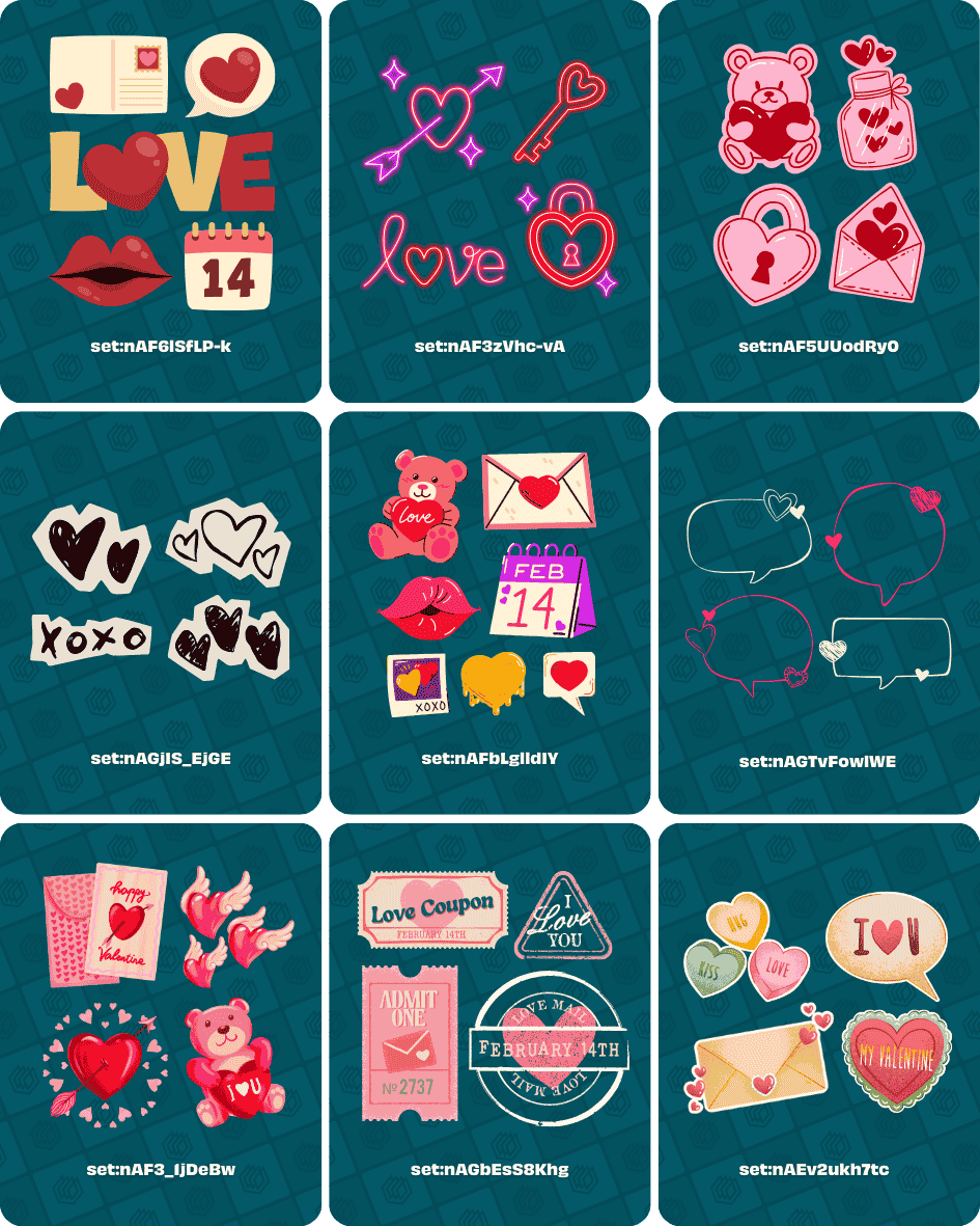 - set:nAEv2ukh7tc (Valentine’s Day sticker elements)