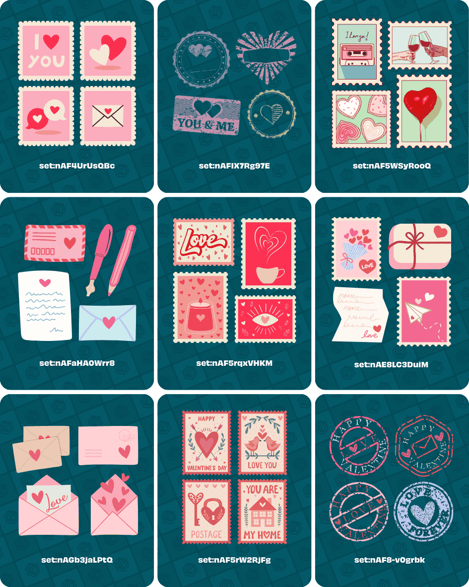 - set:nAF4UrUsQBc (Cute Valentine’s stamps)