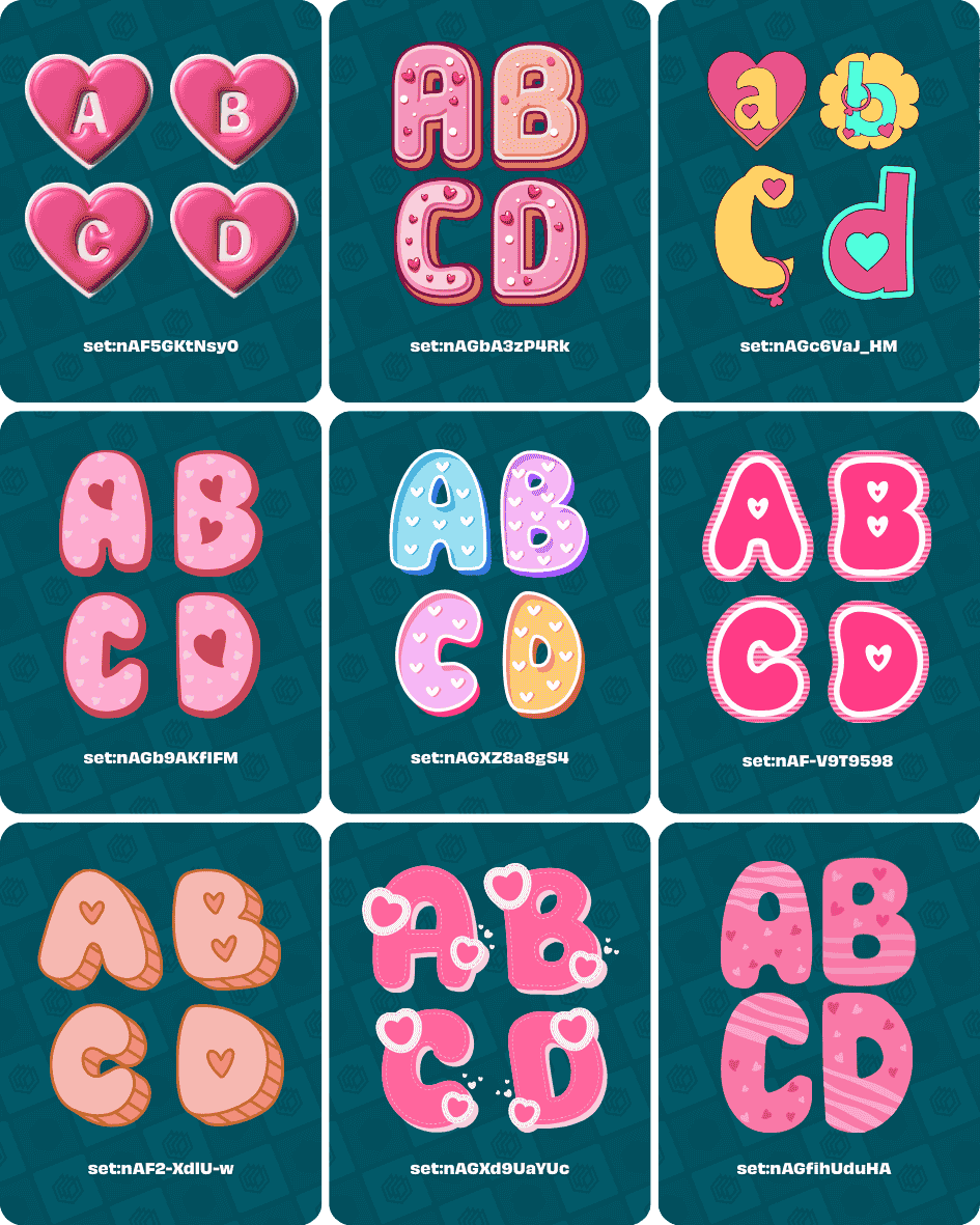 - set:nAF-oXv5-DM (Heart Valentine’s alphabet)